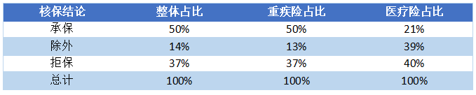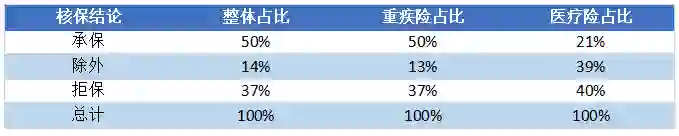 而具体到险种来看,智能核保结论在健康险中的细分占比为: