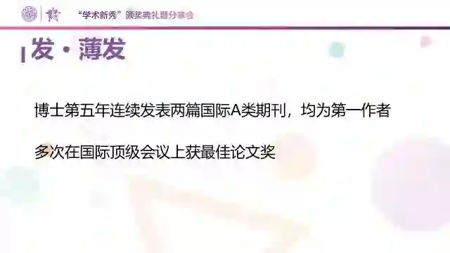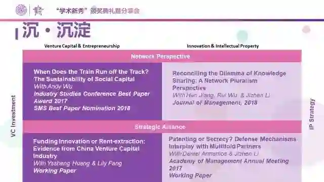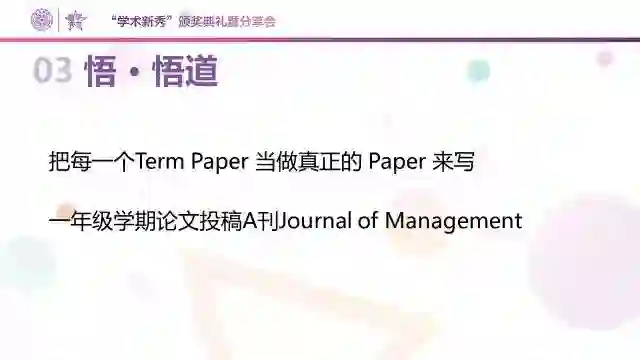 其实这篇博士论文还没有被发表,我在三年级以后写的论文都还没发表。目前只有一年级和两年级的学期论文发表了,其他都还是工作论文。一开始我提到的那篇被JOM拒了的一年级学期论文,后来辗转投了另外一个期刊,也是我们领域的A类期刊。我想我可能是今天所有学术新秀提名者里发表论文最少的一个了。
