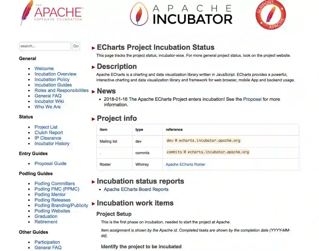 百度开源推进组负责人谭中意也表示:“百度抱着参与、回馈、影响社区的态度进行各种开源活动,充分尊重和理解开源社区的规则和精神,而让 ECharts 成为 Apache 基金会的孵化项目只是开始,百度会继续跟各个开源社区进行更加广泛和深入的合作。”