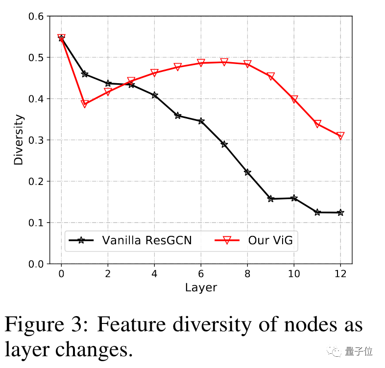 实验表明,用上新方法,当层数较多时ViG学习到的特征会比传统ResGCN更为多样。