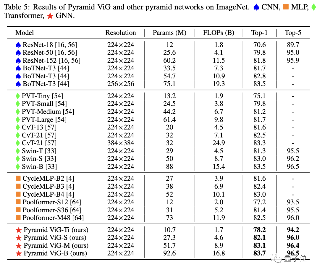 为了更准确评估ViG的性能,研究团队设计了ViT常用的同质结构(isotropic)和CNN常用的金字塔结构(Pyramid)两种ViG网络,来分别做对比实验。