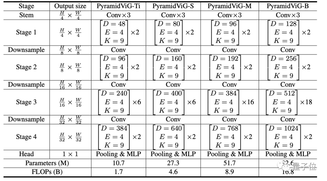 金字塔结构的ViG网络具体设置如下。