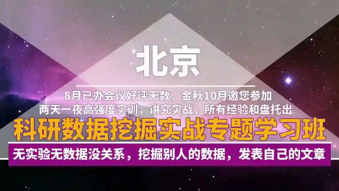 还在认为没有实验就不能发表论文?还在为不精通挖掘GEO,TCGA,SEER等数据库而痛苦不堪?还在为不知道如何找课题找靶点而苦恼?还在为不会那些高大上的图表而暗自伤神?快来参加莫速乎的科研数据挖掘实战专题学习班吧,挖掘别人的数据,发表自己的文章,一次学习,不再报班!