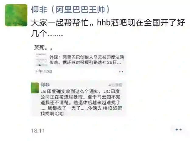 【马云被印度法院传唤,阿里王帅:找了一天也找不到他】7月26日,据路透社消息,一份印度法院的文件显示,印度首都新德里的一家法院因一起诉讼案,已对阿里巴巴创始人马云作出传唤。报道称,一名曾供职于阿里巴巴旗下UC 浏览器的印度雇员起诉称,他因对公司应用程序上的“审查制度”和“虚假新闻”内容提出反对,结果遭到解雇。阿里巴巴市场公关委员会主席王帅在朋友圈透露,UC印度确实收到了这么个通知,正在按流程处理。至于马云,王帅表示并不清楚他是否知道,而且马云退休后越来越难找了,他自己都找了一天了。(快科技)