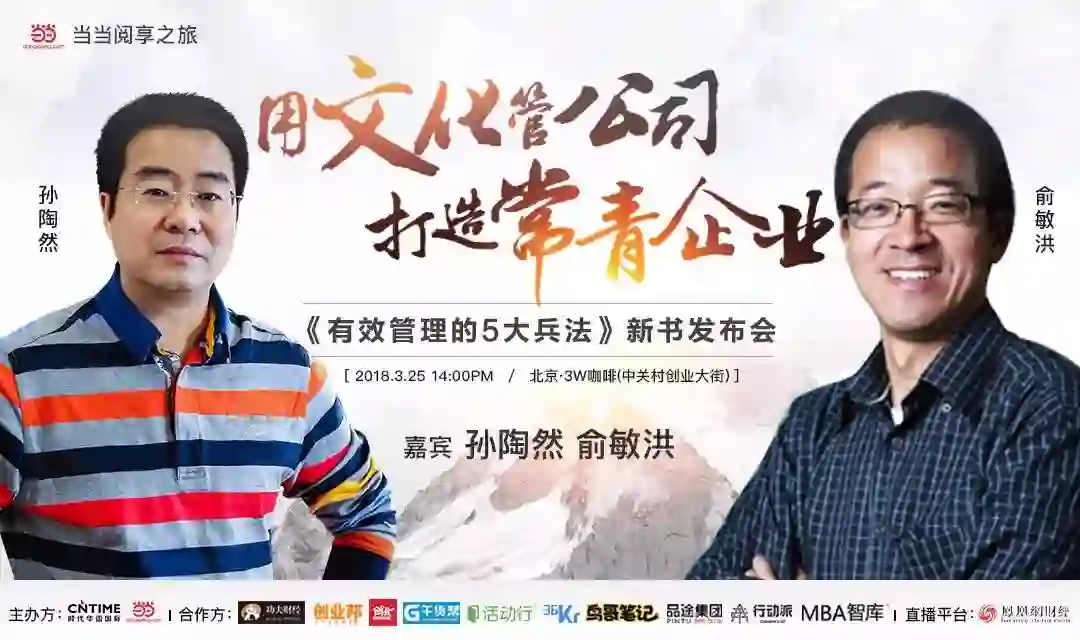 其新作《有效管理的5大兵法》由柳传志、俞敏洪作序推荐,书中孙陶然以管理拉卡拉为例,对企业文化进行了深度剖析,从理念到方法论层层推荐,为领导者提供了一套清晰、完备的管理思路和管理工具。