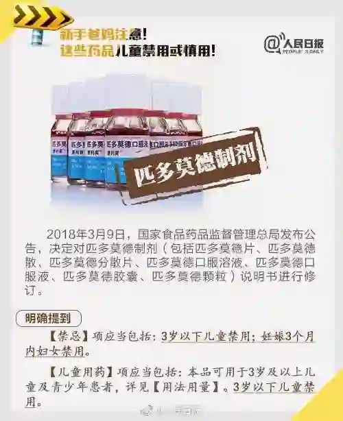 而除了蒲地蓝消炎制剂,据@人民日报微博统计,下面这些药品儿童也应禁用或慎用。
