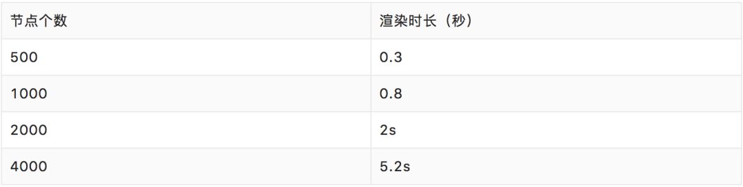 国际化、RTL、无障碍能力全面支持。另外针对中后台表单大数据量场景做了大量性能优化,比如普通 table 随着数据不断增长 render 会越来越慢,大致如下: