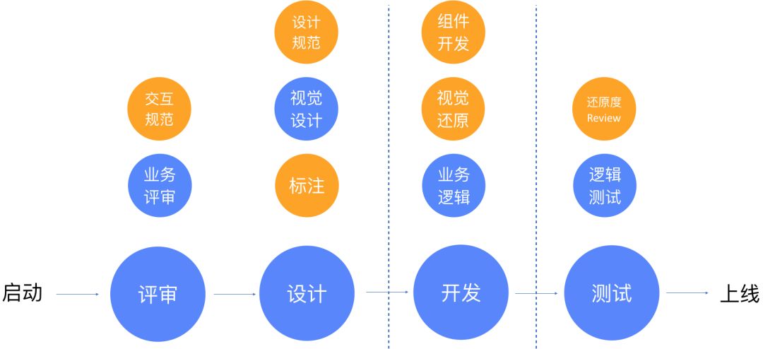 一般一个项目的上线流程基本都要经历,评审、设计、开发、测试 这几个阶段。