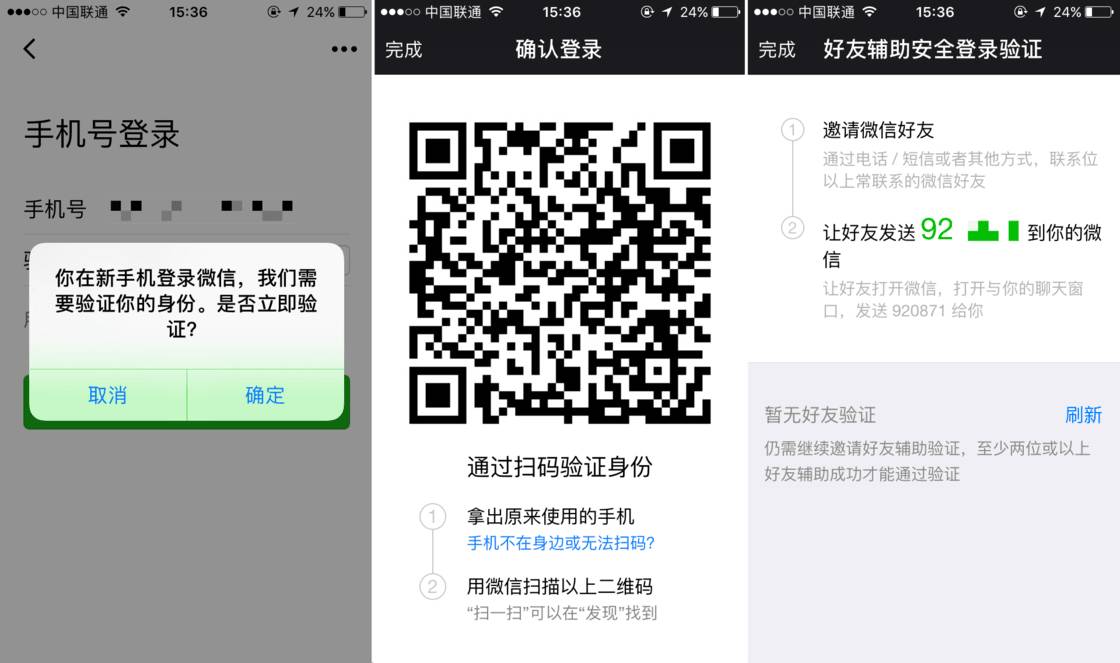 至此大概可以看出,微信进行身份识别是基于你的常用设备信息,或者你的通讯录关系。如果你的朋友趁你不备拿着你的手机来一出恶作剧,小心自己的微信号被绑定上TA 的号码哦!