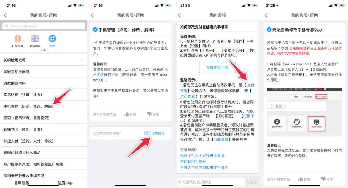 我们可以看到,同一个手机绑定的支付宝和淘宝账号是联动的,更换其中之一即可。如果你的“支付密码”和“银行卡信息”两条路都走不通,还可以去支付宝的网页上申请人工处理。