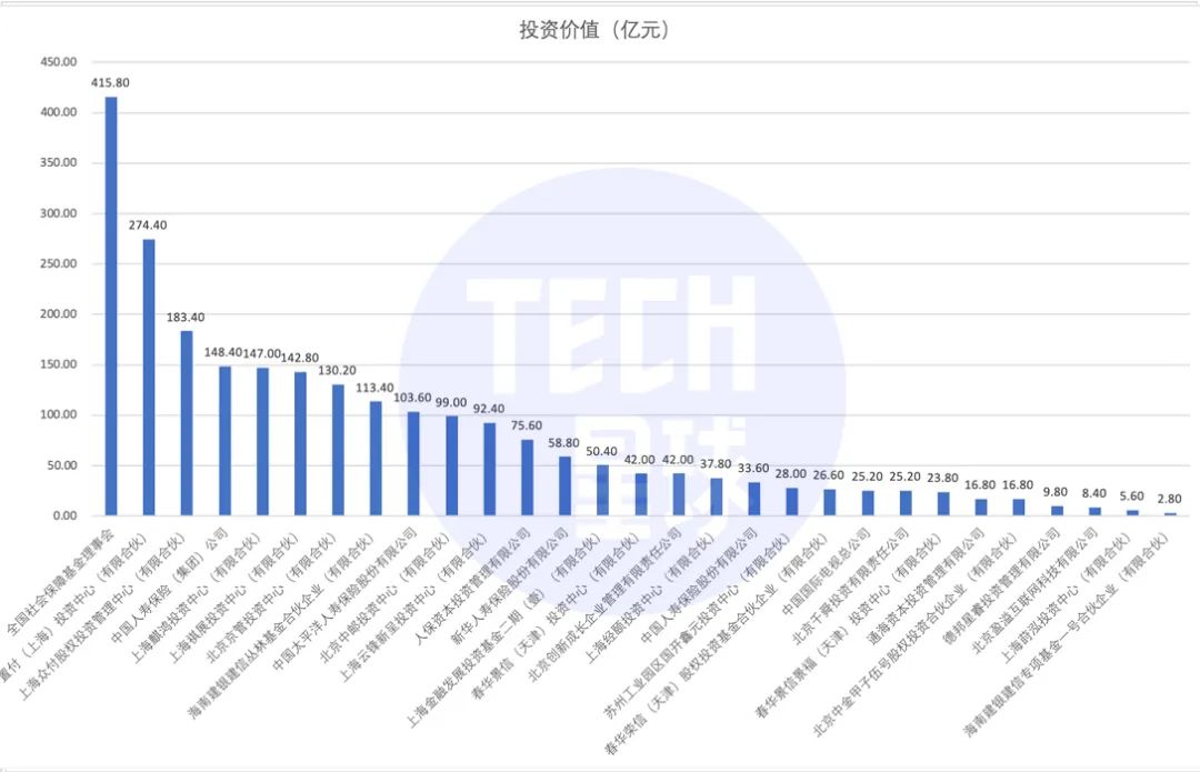 在29家投资股东中,还有4家持股比例不足0.1%,分别是德邦星睿、北京盈溢、上海莳泓和海南建银建信,持股比例为0.07%、0.06%。0.04%和0.02%,这4家合计持股价值为26.6亿元。