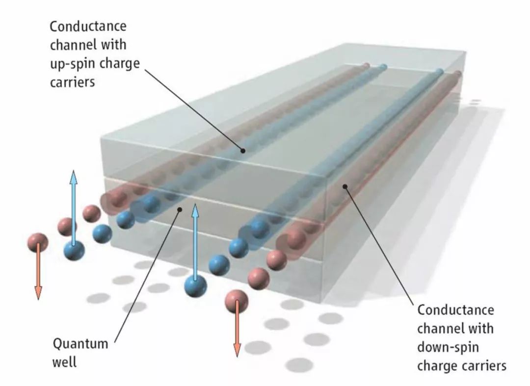 拓扑绝缘体示意图,中心一层为HgTe,上下两层为绝缘物质丨斯坦福大学官网