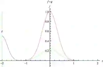 看看站在图表中间的高而窄的钟形曲线。 积分是该曲线下的面积。 靠近它的是第二条钟形曲线,它更短更宽,从图的左侧慢慢向右漂移。 这两个函数在沿x轴的每个点处重叠的乘积是它们的卷积。 所以从某种意义上说,这两个函数正在“融合在一起”。