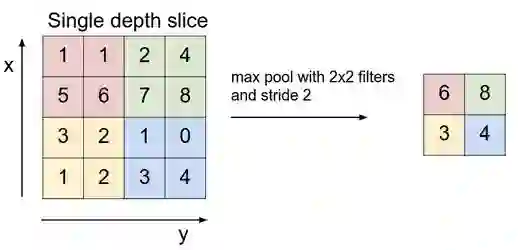 卷积网络中的下一层有三个名称:最大池化,下采样和子采样。 激活图被馈送到下采样层,并且像卷积一样,该方法一次应用一个像素块。 在这种情况下,最大池化只从图像的一个像素块中获取最大值,将其放置在与其他像素块的最大值相邻的新矩阵中,并丢弃激活映射中包含的其余信息。