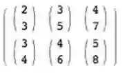 在代码中,上面的张量会被写成这样:[ [ [2,3], [3,5], [4,7] ], [ [3,4], [4,6], [5,8] ] ]。可视化为:
