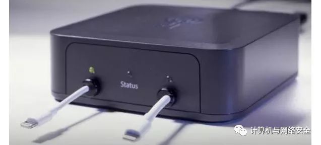 根据3月15日科技博客MalwareBytes爆料,“灰钥匙”是一个便携灰色小盒子,伸出两根苹果设备适用的Lighting线缆,可以同时连入两台iPhone。这台破解设备不仅操作方便,破解一台iPhone密码的成本也十分低廉。
