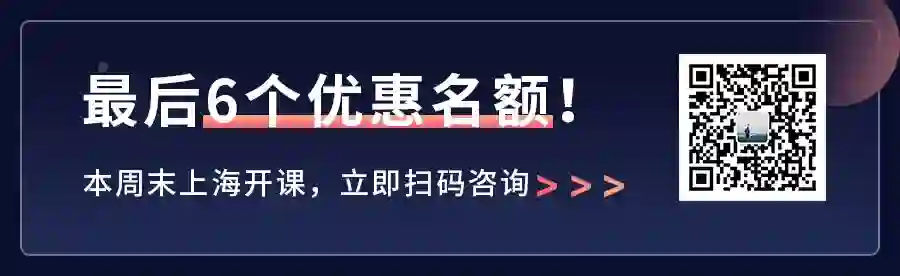 本周末上海站即将开课,仅剩最后6个优惠名额,感兴趣的小伙伴,立即扫描下方二维码,加小助手咨询。