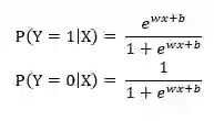二项Logistic回归模型时一种分类模型,由条件概率分布P(Y|X)表示,随机变量Y取0或1。