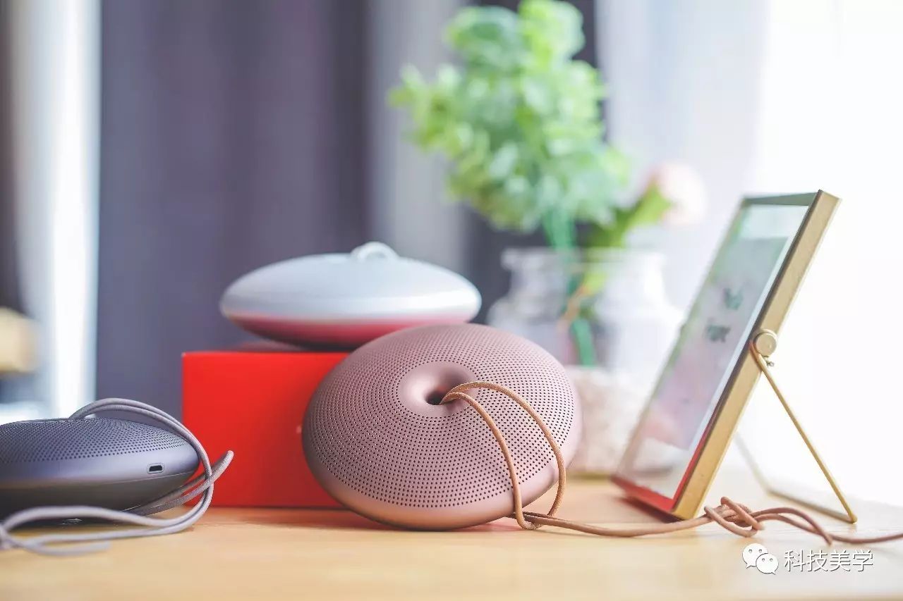 网易云音乐蓝牙音箱的圆盘中间还有一个圆孔,配合做旧的头层真牛皮挂绳可以将音箱挂在任何地方,这种设计已经跳出「功能性」之外,变成一个提升格调的部件。