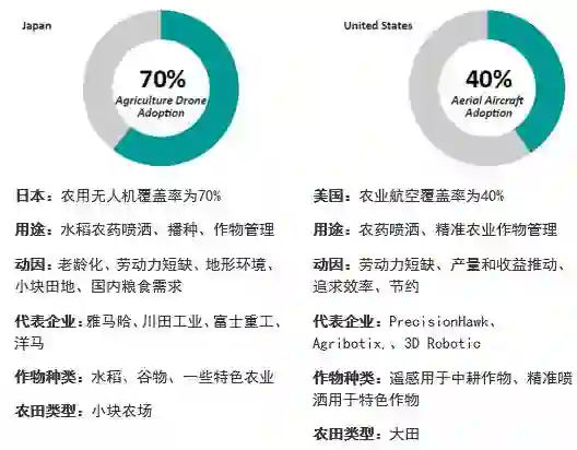 当前美国、日本等国家已广泛使用无人机进行植保,而中国覆盖率仅为2%,有着巨大的发展空间。