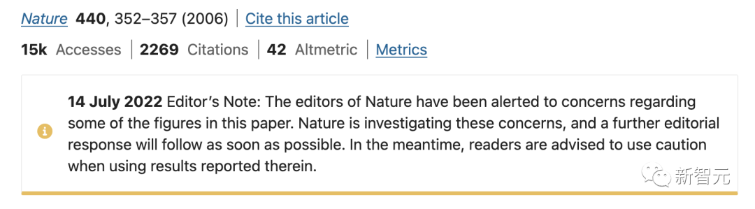 目前,Nature在7月14日对2006年发表的这篇论文添加了注释,并着手调查论文中存在质疑的图片。