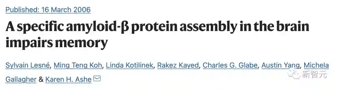 这篇研究一作是Sylvain Lesné,其导师是著名神经科学家、明尼苏达大学教授Karen H. Ashe,也是该论文的通讯作者。