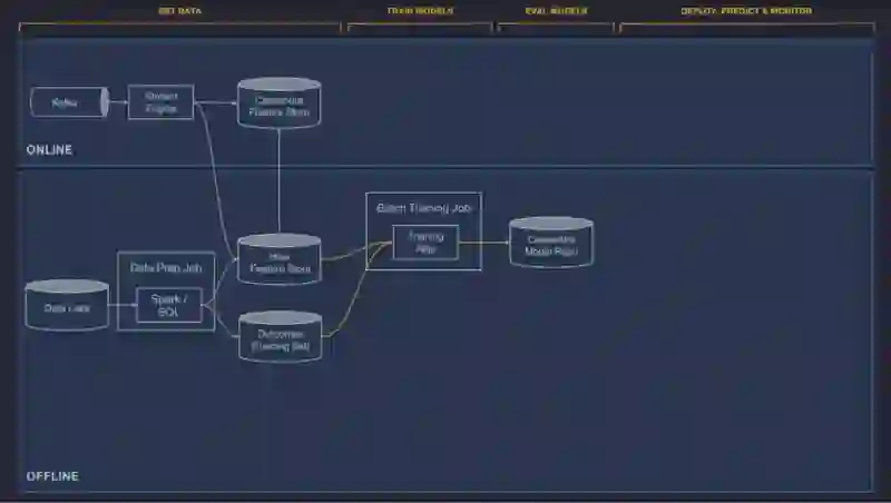 一套平台应该能够提供标准化工具以构建数据管道,并借此生成特征以及标签数据集,进而利用这些成果实现预测所必需的训练(与重新训练)及纯特征数据集。这些工具应当深入集成至企业的数据湖或者数据仓库当中,同时全面与企业的在线数据服务系统相对接。这类管道必须具备可扩展性与良好的成效表现,拥有数据流与数据质量综合监控能力,同时支持在线与离线两种训练与预测模式。在理想情况下,其应以跨团队共享的方式生成特征,同时减少重复工作量并提高数据质量。另外,这些工具还应提供强有力的保护性约束与控制措施,旨在鼓励并批准用户采用各项最佳实践(例如保证在训练周期与预测周期内使用相同的数据生成 / 筹备流程)。