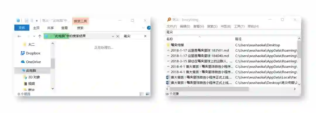 当你想要在 Windows 里寻找一个文件的时候,你会发现这是一件很痛苦的事情。因为 Windows 自带的文件搜索功能体验极其不友好,搜索的速度简直可以用 惨不忍睹 来形容。而且如果你对文件寻找很着急,那么这个痛苦就会加倍。