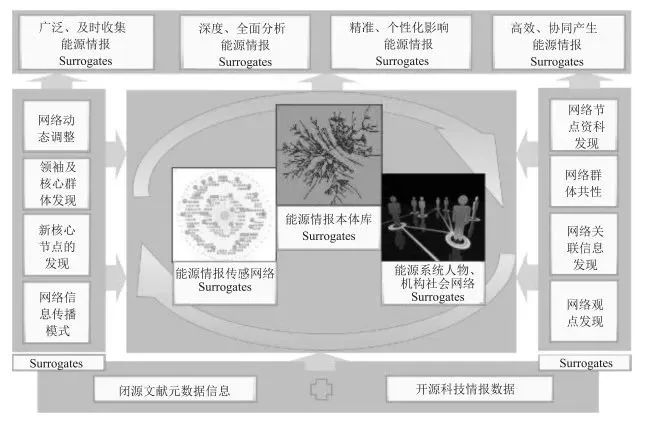 图 9所示为社会计算的整体框架, 包含基于开闭源信息能源情报的广泛采集、深度分析、个性化影响、协同产生等多个关键步骤。传统的物理系统通过各类传感器获得系统的物理信号, 工程控制论在物理过程的自动化中发挥了极其重要的作用。社会传感器, 就是力图将物理系统中传感网络获取物理信号的概念和手段推广到网站、博客、论坛等各类网络空间, 用于社会信号的采集, 获取所关注的社会信号并从中提取出感兴趣的信息.任何企业运营、社会事务、生产过程等方面的管理, 都可以将问题的求解过程扩展到由物理信号和社会信号共同构成的高维解空间中。其中, 融合了物理和社会信号的数据具有海量、形式多样、高度分散等特点, 采用分布式文件系统实现对大规模社会数据的存储和管理, 通过机器学习、数据挖掘、模式识别、自然语言理解等技术对海量信息进行准确抽取、分析、并以用户可理解的方式展现出来, 最终实现信息自动抓取、数据规整、数据量化、自动分类聚类、主题检测等功能, 从而为各行各业的决策提供坚实有力的量化支持。