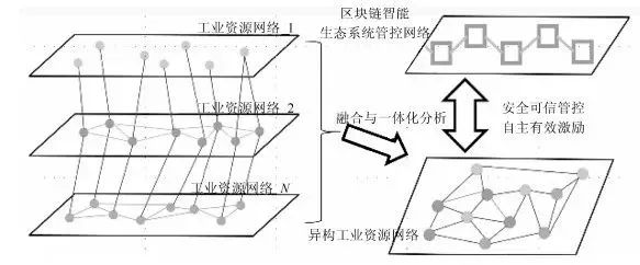 工业资源的管控新模式则是通过工业智联网技术, 对传感、控制、信息、计算等不同结构的工业资源网络, 进行一体化建模分析、决策和自主运行, 实现异构网络的互联互通, 并提供准入接口, 提高异构网络成为智能工业生态系统的可能性。同时采用分布式管理、智能合约技术以及不可篡改的方法实现对工业资源的安全可信的管理。