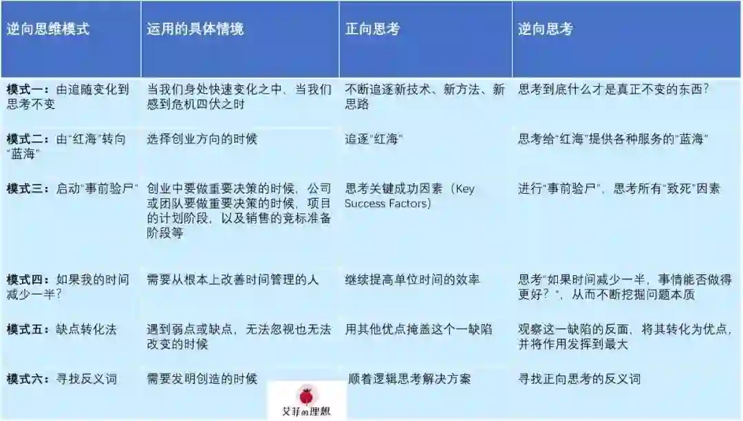 最后,让我们用一张图来总结一下今天的6种逆向思维模式。