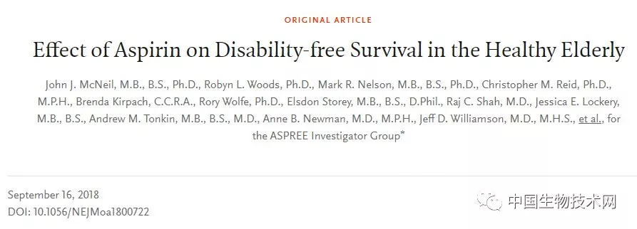 领导该试验的澳大利亚墨尔本莫纳什大学的John McNeil说:“尽管阿司匹林已经问世超过100年,但是我们还不清楚健康老年人是否应该服用这种药物来作为预防措施以使延长寿命。全世界目前有数百万的健康老人每天都在服用低剂量的阿司匹林,也许这么做是没有必要的,因为我们的研究显示,服用阿司匹林并没有全面的益处以抵消出血的风险。”该试验细节近日已发表在《New England Journal of Medicine》上。