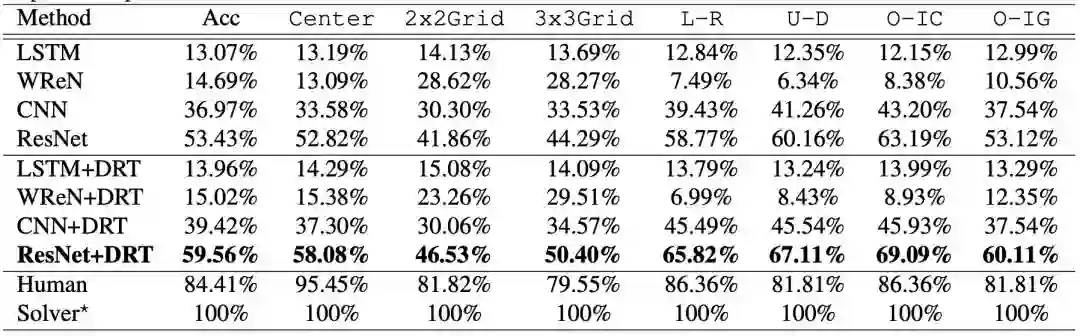 VQA 只需要空间和语义理解,但 RPM 需要在问题矩阵和答案集中进行时空联合推理。短期记忆的限制、类比能力以及结构的发现也必须考虑在内。