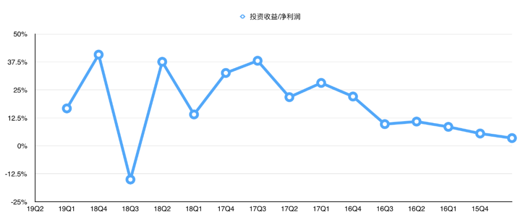 数据很明显显示,投资收益(也即其他收益净额)在18Q4~19Q1,基本处在利润扭曲的巅峰期,当然这也和资本市场大熊市是挂钩的。