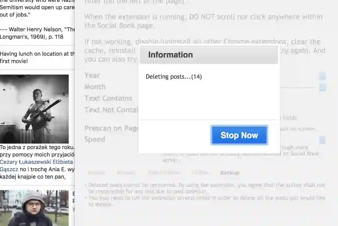 我正在有条不紊地 运行一个可删除Facebook以往内容的脚本 ,慢慢摆脱对Facebook的依赖。我在FB上贴了很多内容,比如“赞”和分享,还有长文,和数千个WordPress自动发帖的通知。我敢打赌,我使用Facebook更多是为了刷存在感,而不是与真人进行互动。我怀疑我们大多数人都是这种情况。