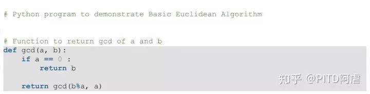 其中欧几里得算法可以用简洁的递归函数来实现,比如python的代码:
