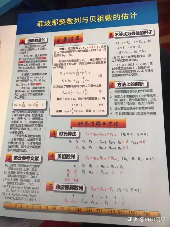 “斐波拉契数列与贝祖数的估计”这个课题的含金量如何,知乎用户PITD阿虐本着专业精神科普了一番,认为谈同学“小小年纪就开始研究数学问题,读英文文献,而且做了学术展示。对于高一的学生来说,这样的经历肯定是独一无二的。”