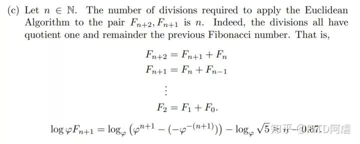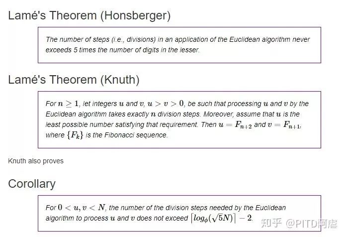 :其实吧,看过算法导论的同学都可能看过相关的阐述,裴蜀定理、欧几里得算法和斐氏数列之间的联系可以追溯到法国数学家 Gabriel Lamé (1844)年的证明, Donald Knuth 大神在 1969 年的《Seminumerical Algorithms》里有详细阐述和讨论。一句话解释就是:斐氏数列是欧几里得算法递归效果最差的情况,因此用斐氏数列来求上界是最自然不过的了。