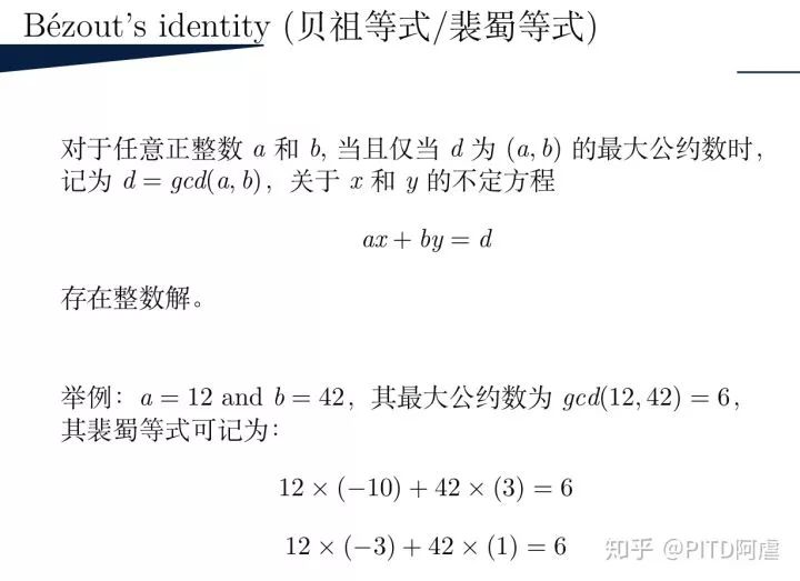 斐波那契数列,裴蜀定理(又称贝祖定理),以及欧几里得算法。