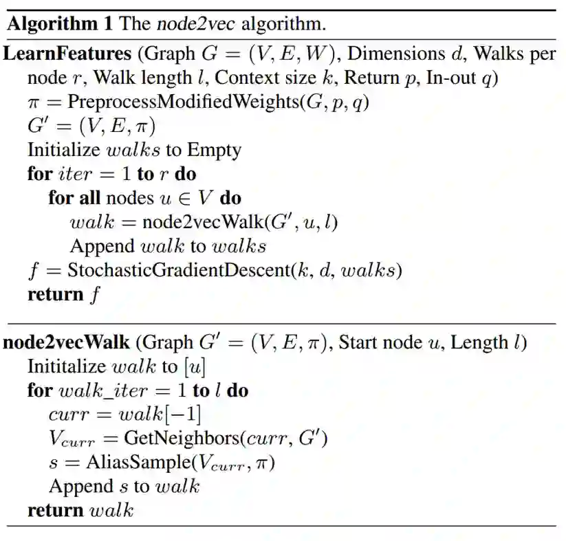 node2vec: Scalable Feature Learning for Networks: https://arxiv.org/abs/1607.00653
