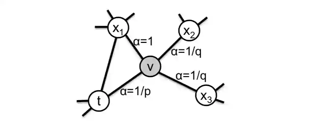 其中, 表示节点 和节点 之间的未归一化概率(即从节点 转移到节点 的概率), 为归一化常数。