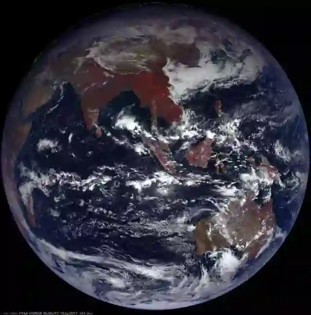 下图所示是真正的地球风云,这是去年12月11日发射的风云四号气象卫星上面的扫描成像辐射计拍摄的地球24小时的云图,赤道附近有一块亮斑在移动,那是太阳在海洋上面的倒影。