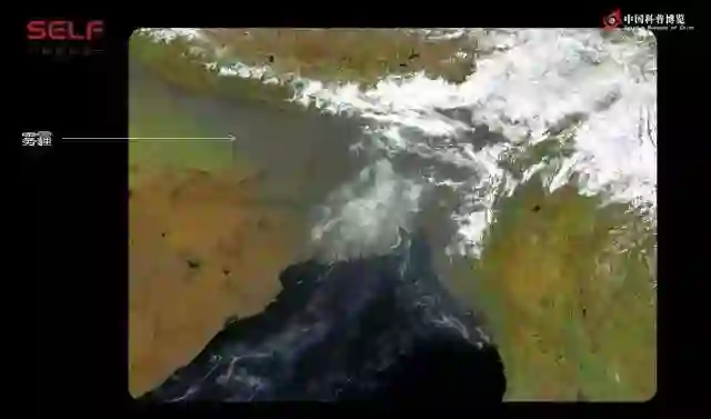 下面这张合成图是对孟加拉湾北部的一个雾霾监测图,在这张图中灰色的是雾霾,白色的是云还有雪。