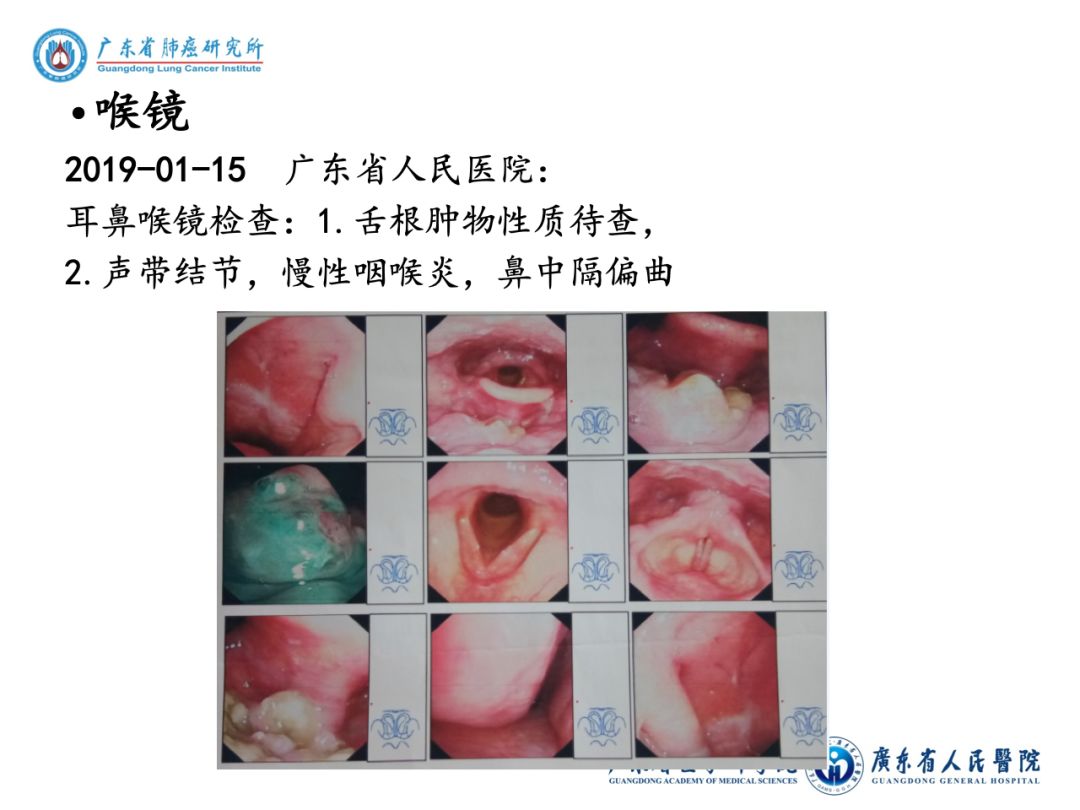 2)2019-02-11因“咽喉不适5个月,发现舌根癌2周”收入放疗科。