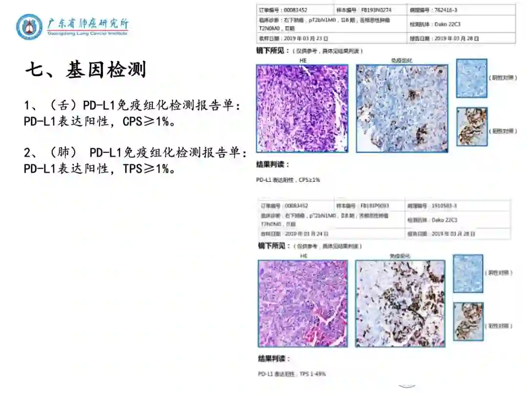 1)男性,63岁,吸烟30年包,无肿瘤家族史,PS 1分。