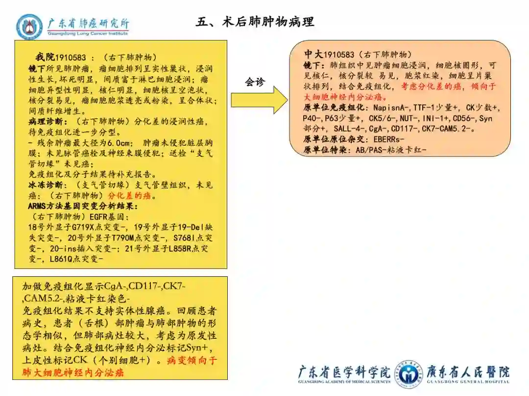诊断:大细胞神经内分泌癌pT2bN1M0, ⅡB期。
