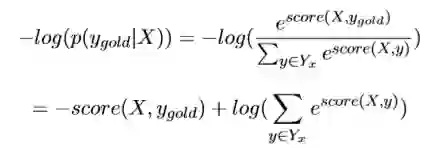 因为这个预测序列有很多种,种类为label的可重复排列组合大小。其中 只有一种组合是对的,我们只想通过神经网络训练使得对的score的比重在总体的所有score的越大越好。而这个时候我们一般softmax化,即: