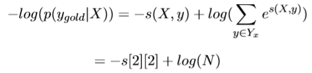 其中分子中的s为label序列为正确序列的score,分母为每种可能的score的 总和。