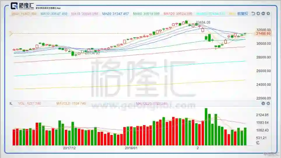 外围股市向好,港股今日跟随上涨,恒指升至31500点附近。主要指数涨幅在0.5%-0.8%之间。不过,市场观望情绪明显,大市成交仍未迎来量能的显著放大。从技术形态上看,近几日恒指企稳于50日均线,但31700点附近的下跌缺口有待收复。