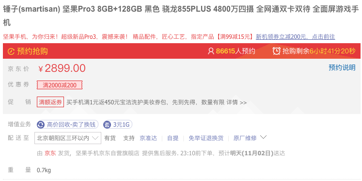 硬件方面,水滴屏、四摄、骁龙855 Plus、UFS3.0、屏幕指纹、4000 毫安电池,Pro3 把配置堆到了锤子的新高度,售价 2699 元起。